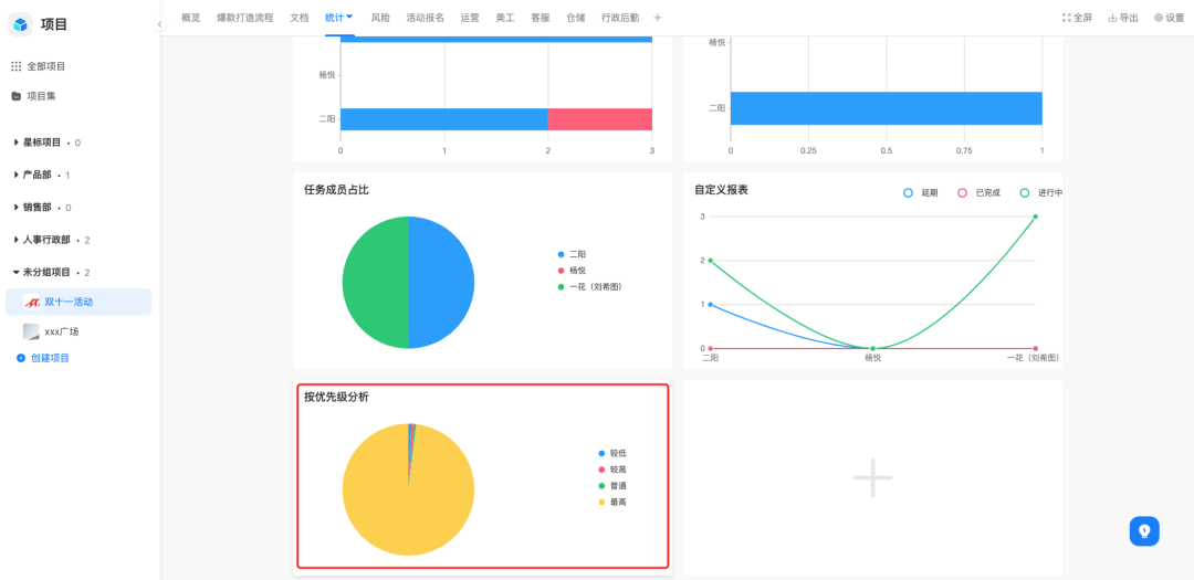 现将项目统计中的优先级也变更为按照【最高、较高、普通、较低】的逻辑显示。